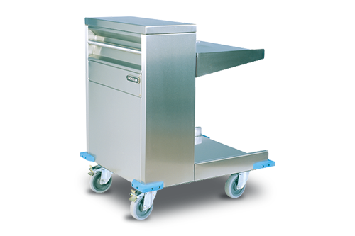 Yaylı ve rulmanlı bir mekanizma sayesinde tepsilerin aynı yükseklikte kalır.