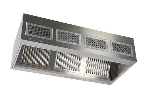 Tamamı AISI304 kalite 18/8 Cr-Nİ paslanmaz çelik saçtan üretilmiştir. Tamamı 1,0 mm kalınlığındadır. Sac kenarları birbirine bindirmeli olarak punta kaynağı ile hava kaçışını önleyecek, baca basıncını düşürmeyecek şekilde birleştirilmiş ve iki parçalı olarak üretilmiştir. Davlumbazın tavana montajı çelik dubellerle ve üzeri plastik kaplı çelik askı halatlarıyla yapılacaktır. Davlumbaz halat bağlantısı özel yüksek dayanımlı geçme kancalarıyla yapılacaktır. Hava perdesi bulunmaktadır. İsteğe göre etanj tip armatürlerle aydınlatma imkanı bulunmaktadır.