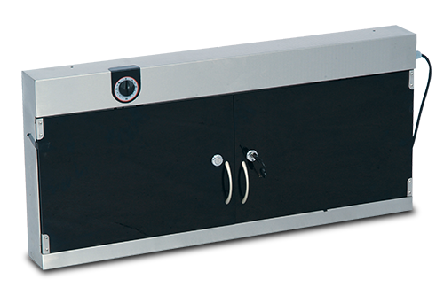 Renkli flexiglas’tan yapılmış kilitlenebilir ön kapak mevcuttur.